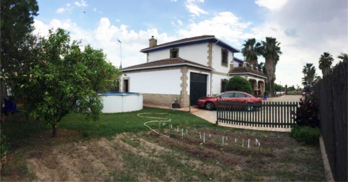 Zona exterior ajardinada, piscina, trastero garaje de 28m2, y huerto.
